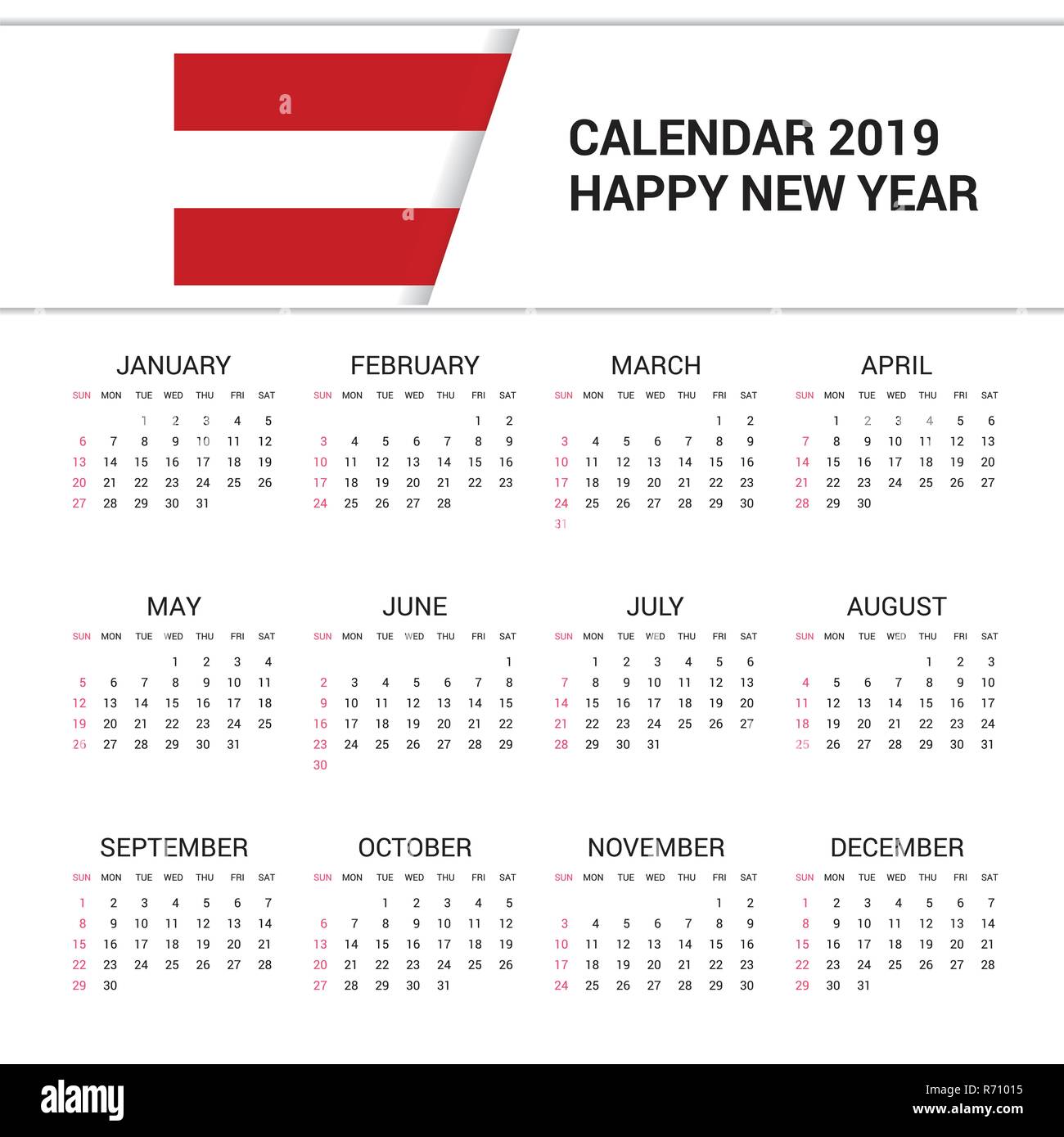 Kalender 2019 Osterreich Flagge Hintergrund Englische Sprache Stock Vektorgrafik Alamy