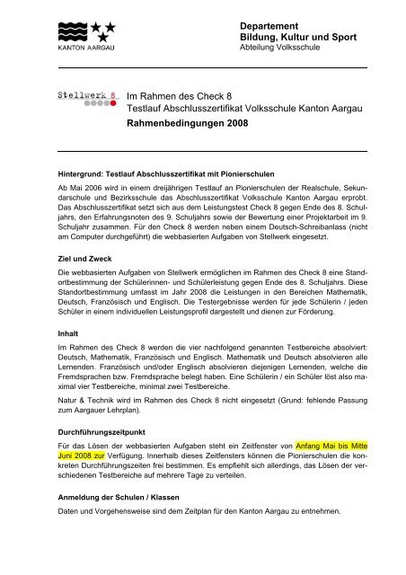 Departement Bildung Kultur Und Sport Im Rahmen Des Stellwerk