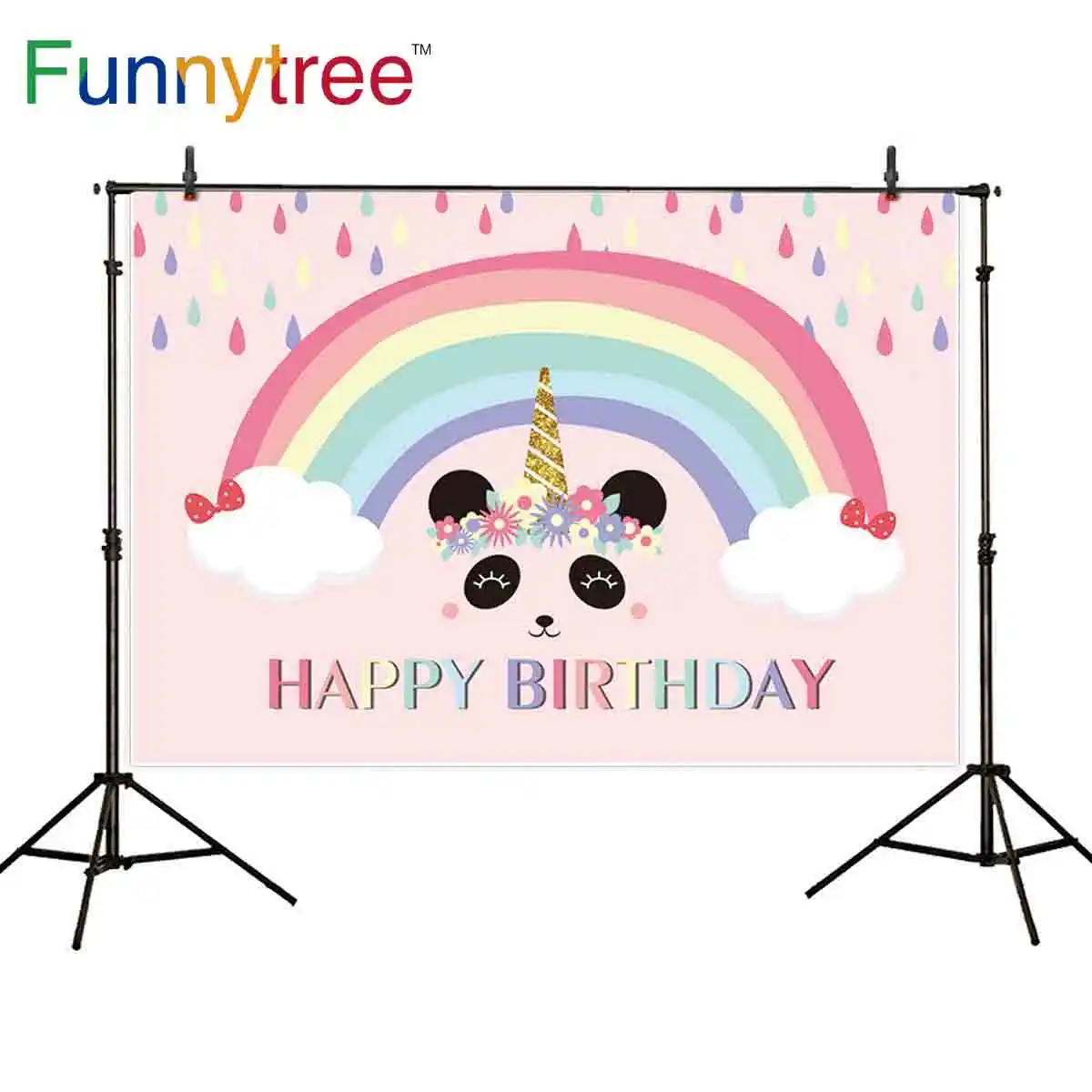 Funnytree Fotografie Studio Glucklich Geburtstag Regenbogen Panda Wolke Blume Regen Hintergrund Dekoration Party Photo Photophone Aliexpress