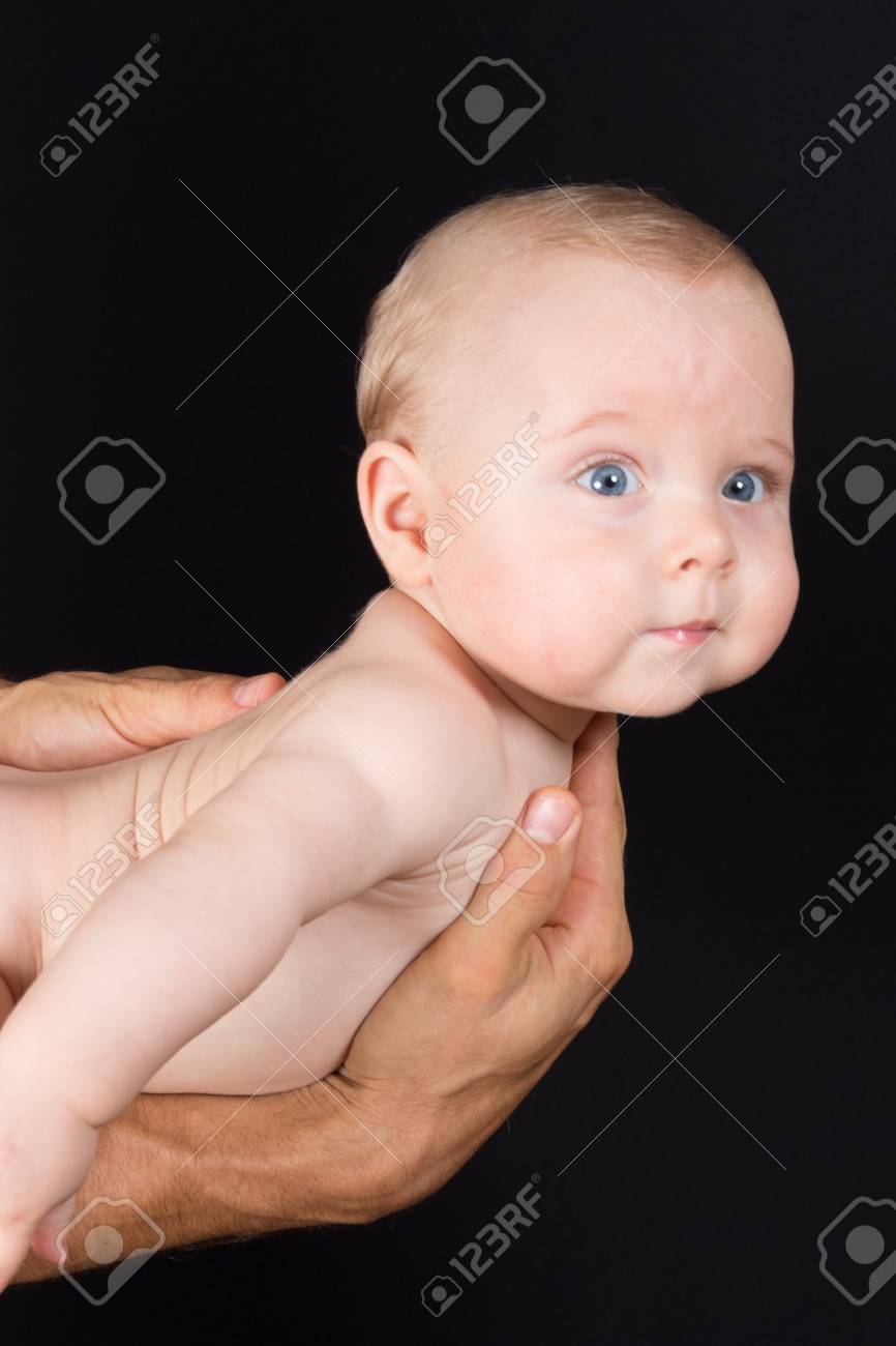 Newborn Child Lies On Hands Of The Father Black Background Stock Photo Picture And Royalty Free Image Image 86896862