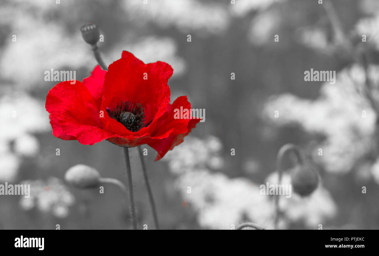 Ein Einzelner Roter Mohn Steht Vor Einem Einfarbigen Hintergrund Alllowing Kopieren Stockfotografie Alamy