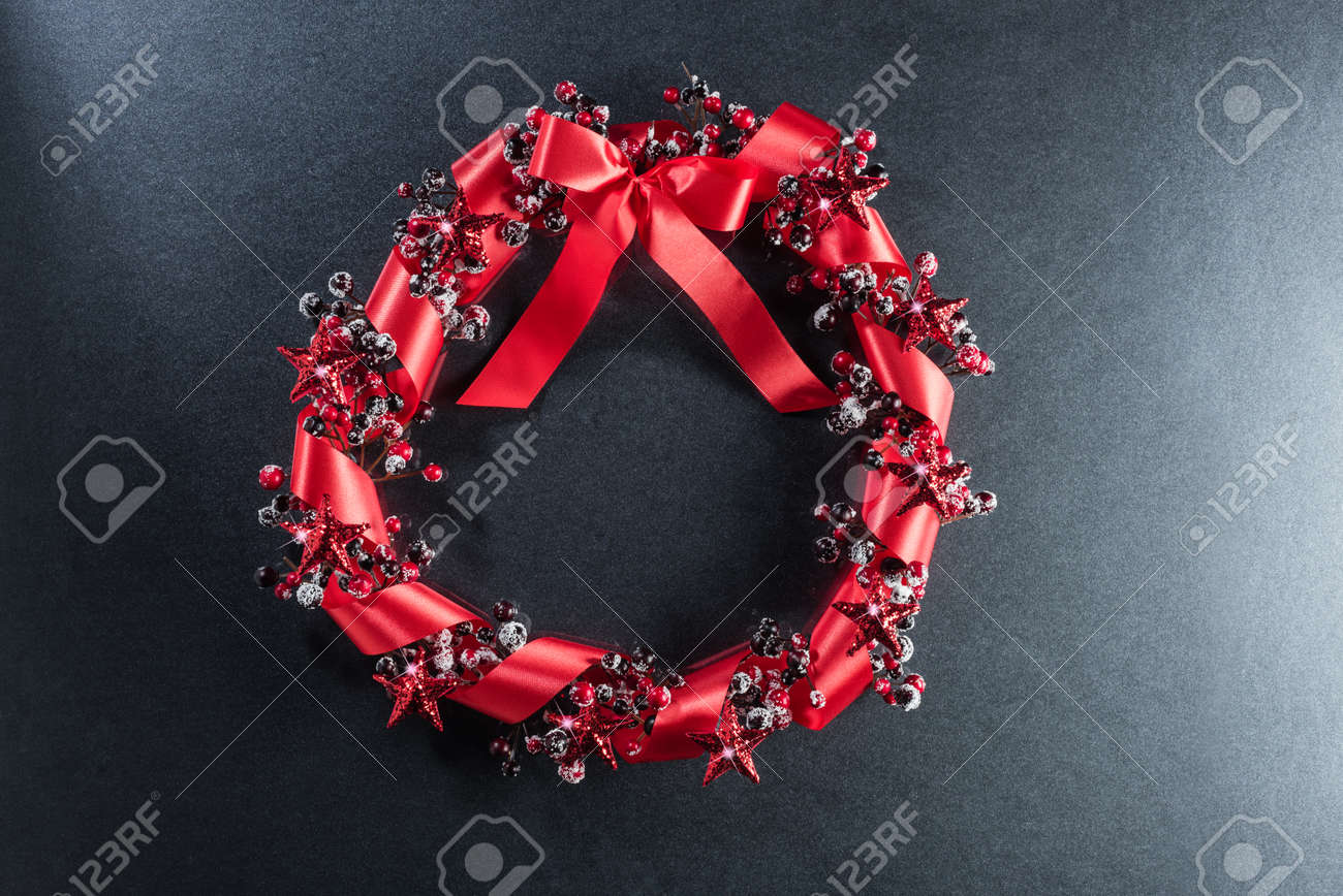 Adventskranz In Rot Mit Band Uber Einfarbigen Hintergrund Lizenzfreie Fotos Bilder Und Stock Fotografie Image 60179185