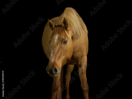Fuchsfarbenes Pferd Mit Leicht Gesenktem Kopf Im Fotostudio Vor Schwarzem Hintergrund Kaufen Sie Dieses Foto Und Finden Sie Ahnliche Bilder Auf Adobe Stock Adobe Stock